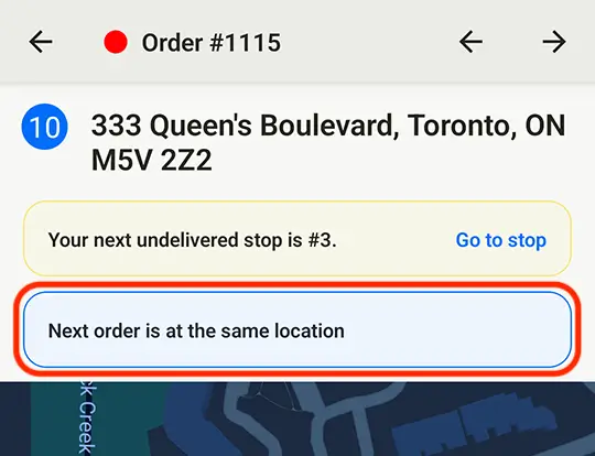 EasyRoutes will let you know if more than one order is at the same location. This is visible above your map when viewing a stop: