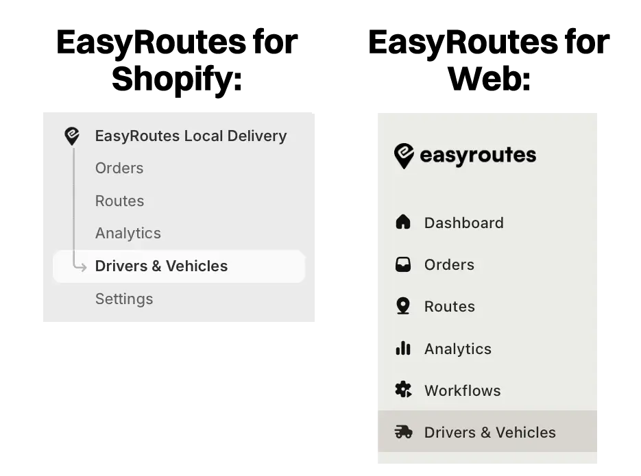 Access all driver management options discussed in this article from the EasyRoutes navigation menu > Drivers & Vehicles tab: