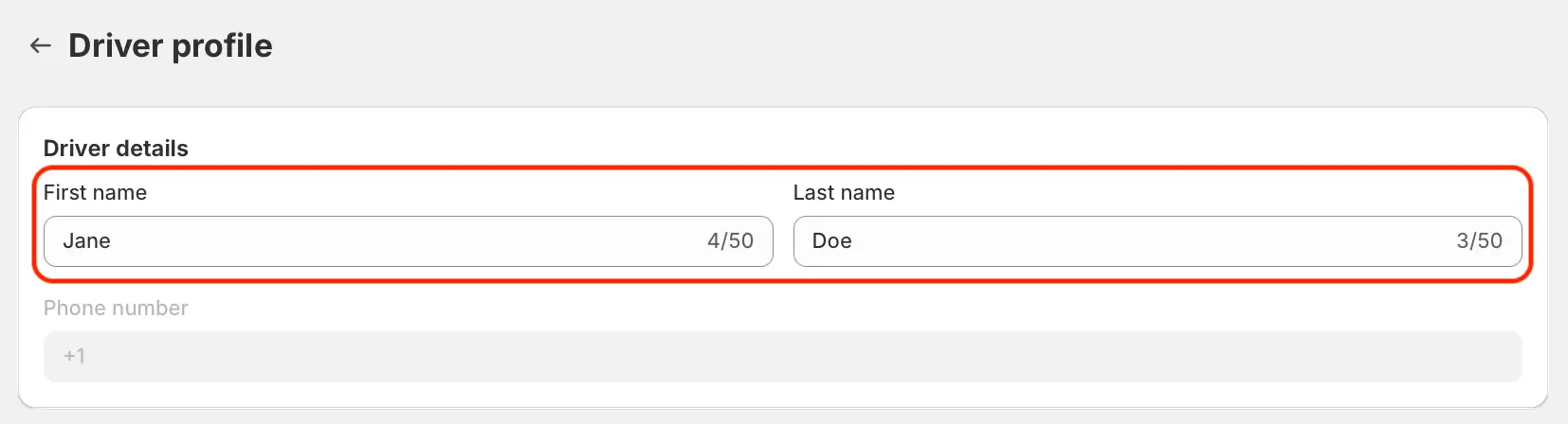 Driver names can be edited directly from the Drivers & Vehicles tab, first by clicking the name of the driver you'd like to update. Input the driver's new name in the First & Last name boxes provided: