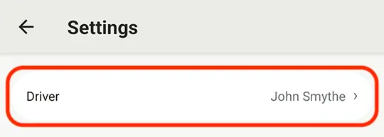 At the top of the settings page, you'll find the driver name currently associated with this account. Tap on it to edit this driver profile: