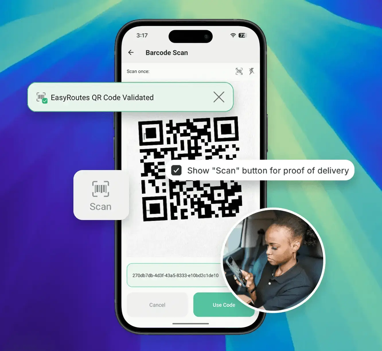 EasyRoutes-native barcodes can now be included on packing slips & labels, scanned by drivers for an additional layer of order validation, and collected for live or historical review by route planners, alongside all other proof of delivery items.
